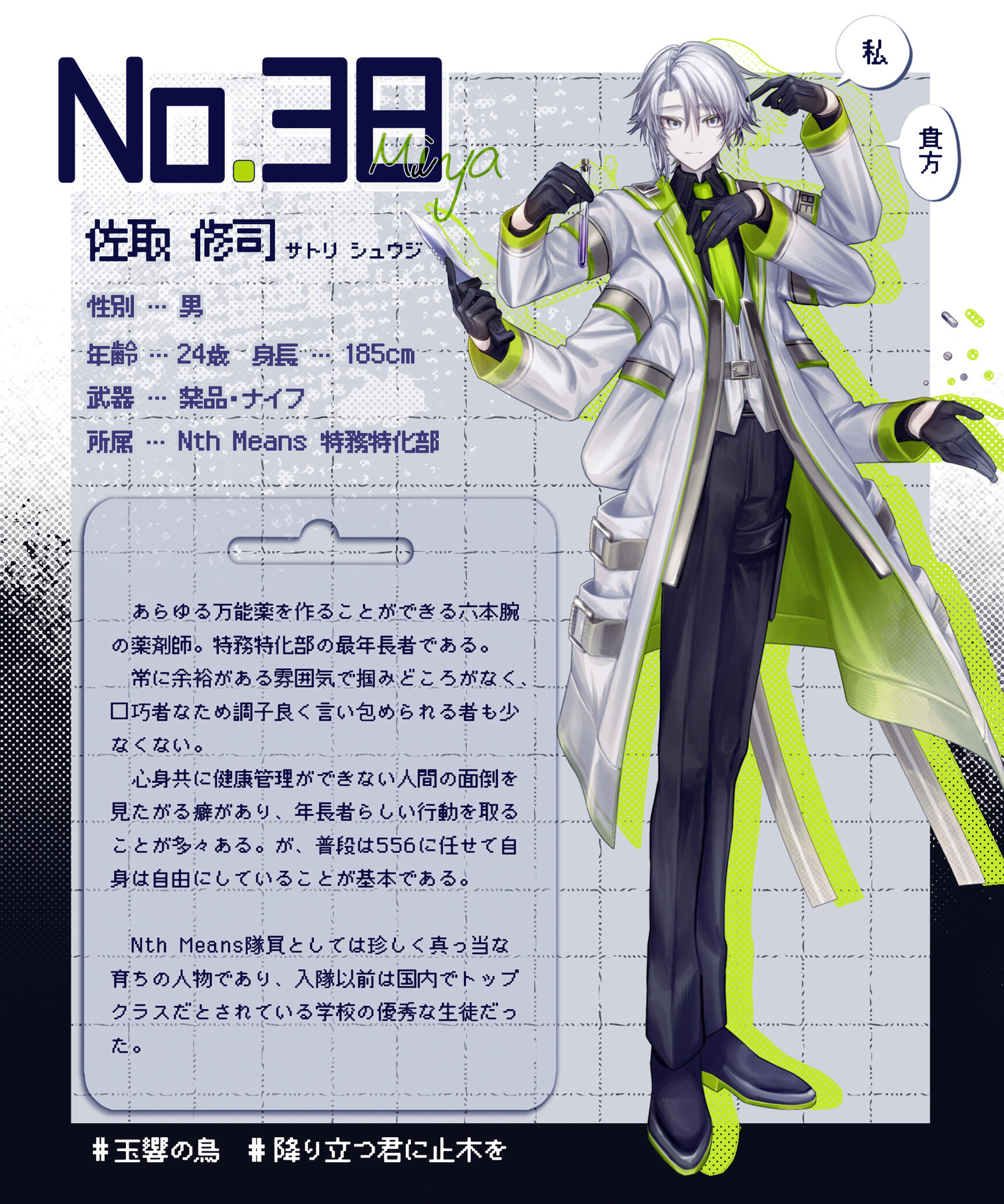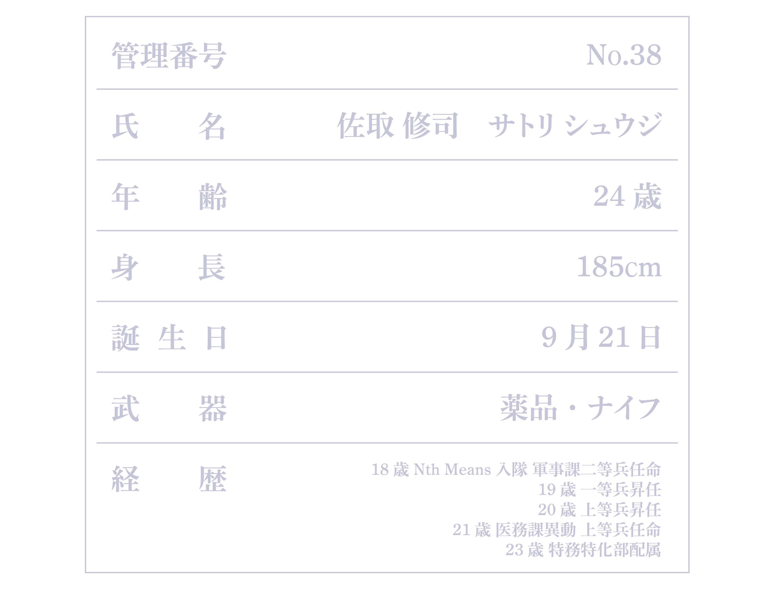 「ただの一般人や兵として生活してた頃とは明らかに違う、刺激にあふれた毎日でとても気に入っていますよ~!兵時代にもココロさんやヤツメくんと一緒に隠れて色々やりましたが…ああ、88はもういないんでしたねぇ。失礼いたしました。」