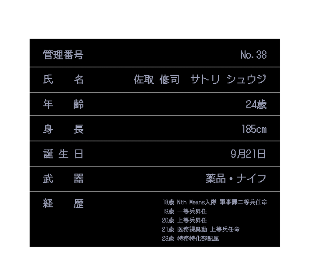 「ただの一般人や兵として生活してた頃とは明らかに違う、刺激にあふれた毎日でとても気に入っていますよ~。兵時代にもココロさんやヤツメくんと一緒に隠れて色々やりましたが…ああ、88はもういないんでしたねぇ。失礼いたしました。」